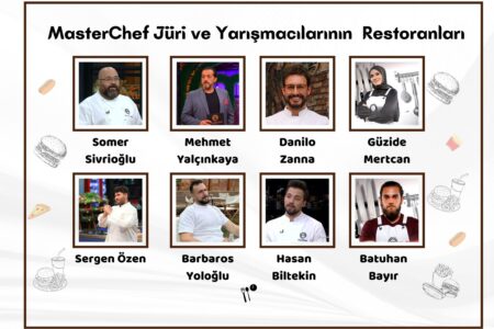 MasterChef Türkiye’de izlediğiniz o muazzam tabakları tatmak ister misiniz? Mehmet Şef’in disiplinli mutfağından, Sergen’in meşhur köftesine; jüri üyelerinin ve yarışmacıların restoranlarını ve menülerini inceledik.